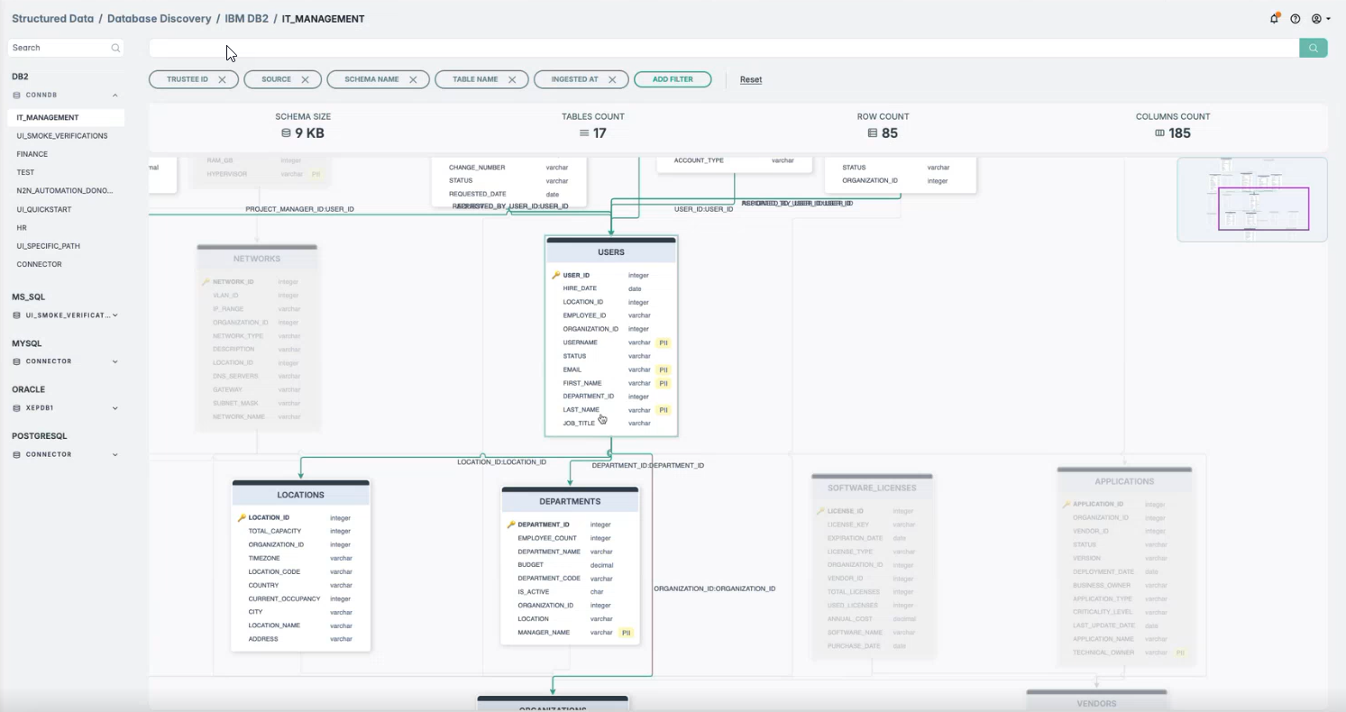 For example, say you want to view the details on IBM DB2 schemas, then expand the IBM DB2 section, and click any specific schema: