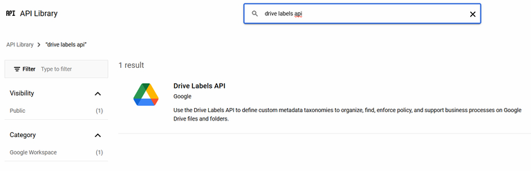 Search for Drive Labels API and click on it.