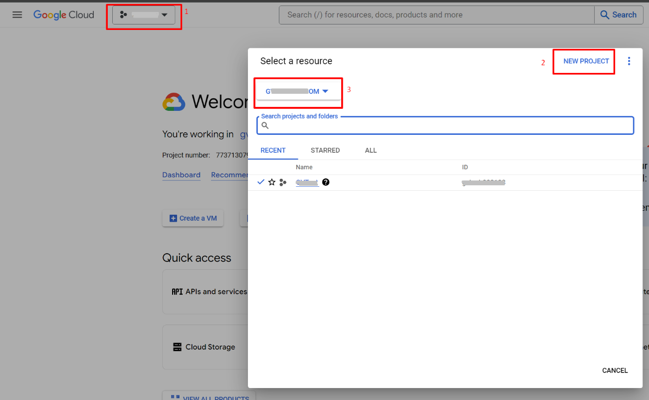 Create a project in Google Cloud Console: