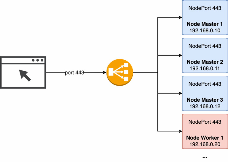 The user must not access the K3s nodes directly, instead, there should be a load balancer sitting between the end user and all the K3s nodes (master and worker nodes):