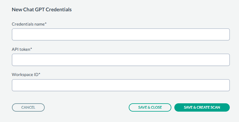Navigate to Administration > Data Sources > ChatGPT > New Credentials.