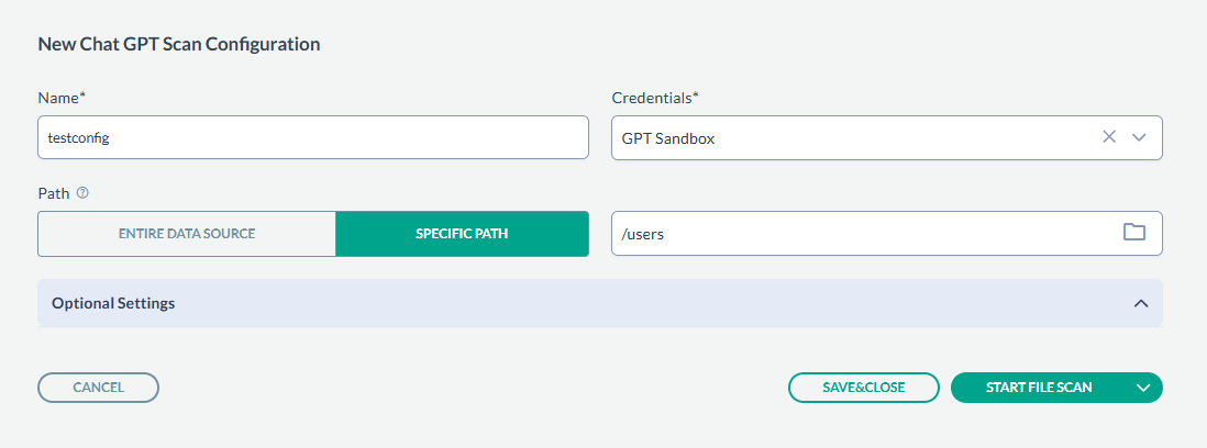- Next, click SAVE & CLOSE to just save the configuration or you can start the scan by clicking START FILE SCAN.