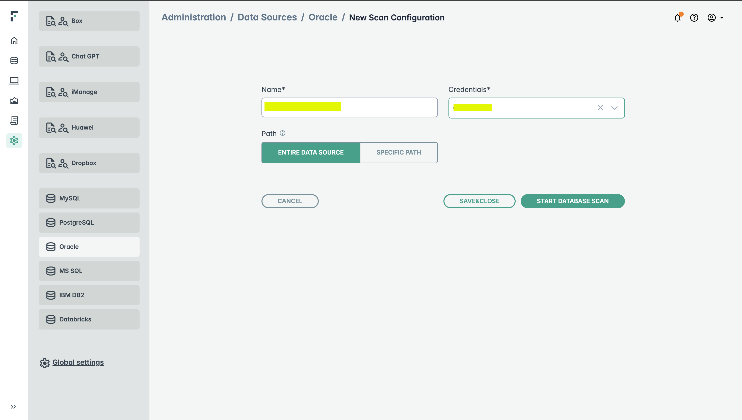 On the next screen, you can either select Save & Close to save the configuration for future scans, or you can click Start Database