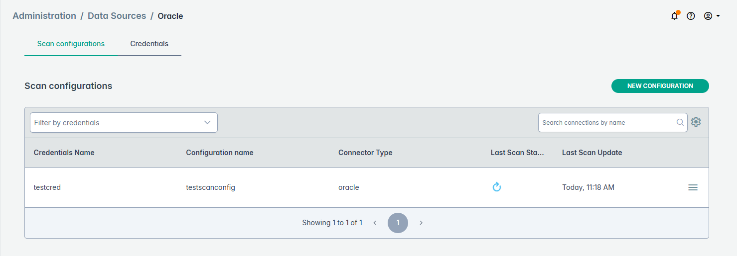 If the connection succeeds, the New Scan Configuration page appears. Enter a Name and select the specific credential from drop
