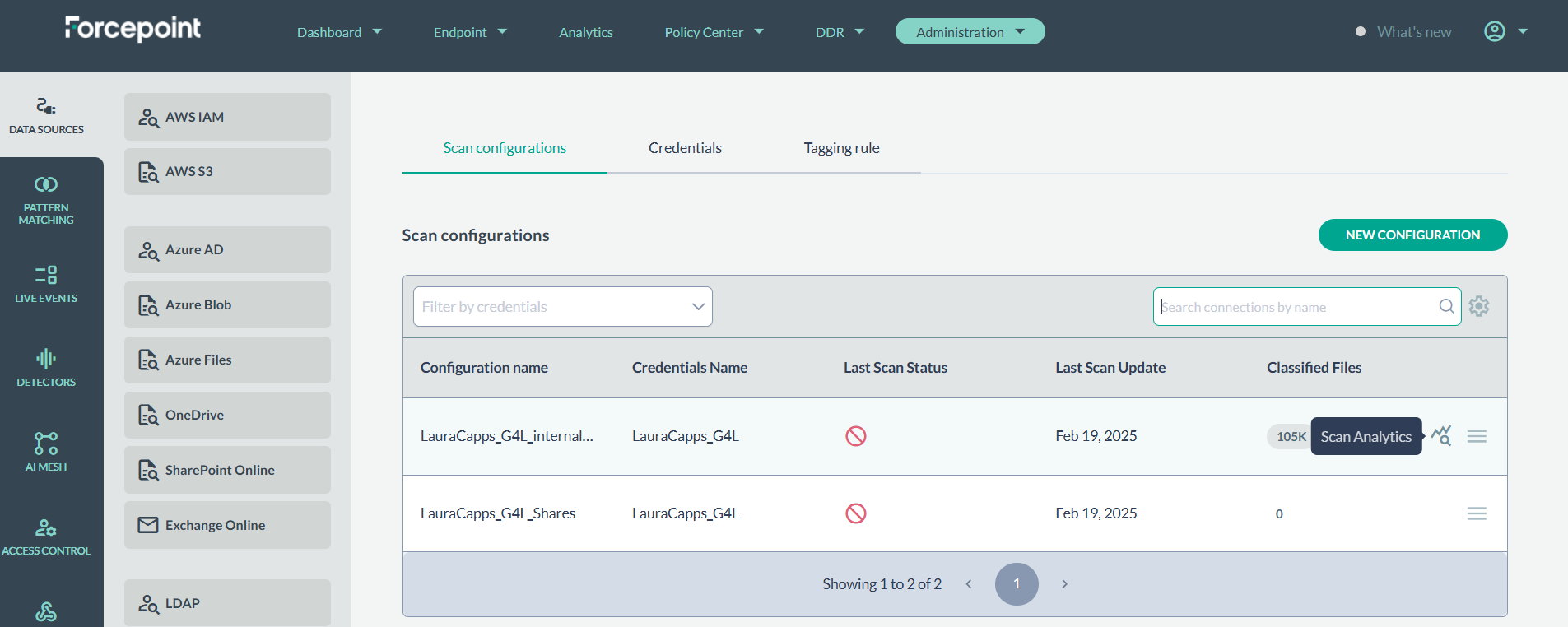 To see additional information on a running or completed scan click on the Scan Analytics icon.