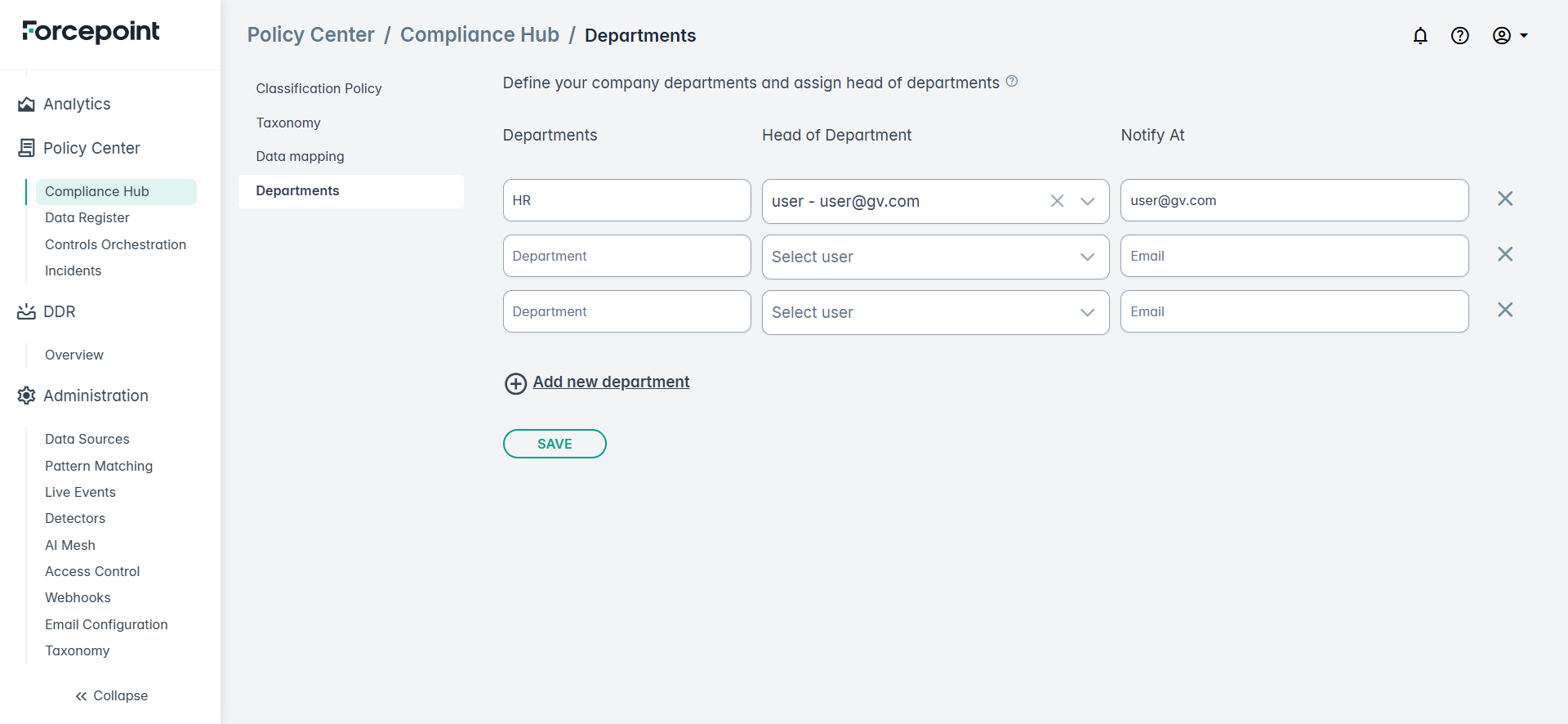 Departments represent functional groups—such as HR, Finance, or Payment Processing—that work with and manage data sharing certain characteristics. For example, the HR team handles resumes and personal employee information, while the payment team manages PCI-related data and customer banking details. Grouping data this way allows policies to address the unique security and compliance needs of each type of data.