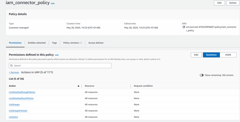 - For Resources, choose all and select Create policy to save the new policy.