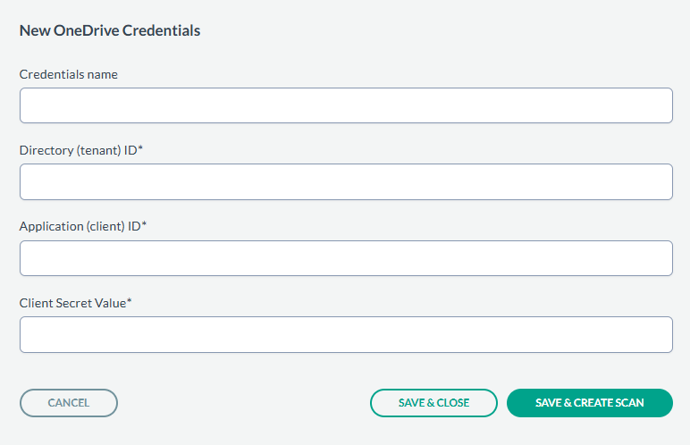 Navigate to Administration > Data Sources > OneDrive > New Credentials.