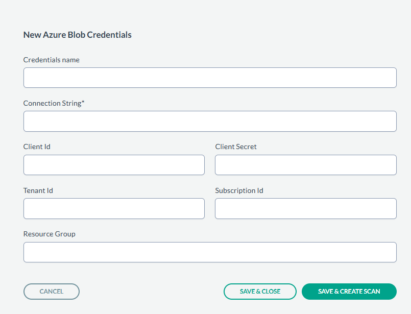 Navigate to Administration > Data Sources > Azure Blob > New Credentials.