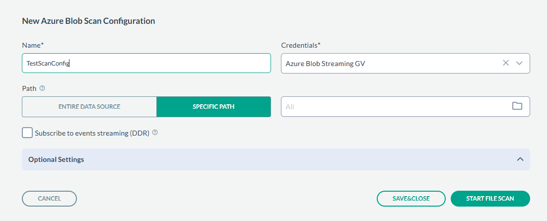 If you want to scan all objects, you can also select ENTIRE DATA SOURCE. - Next, click Save&Close to just save the scan configuration or you can start the scan by clicking START FILE SCAN.