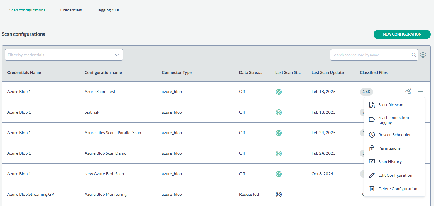 If you have created scan configurations previously, they will be listed under the Scan configurations tab. To run one of the previously created