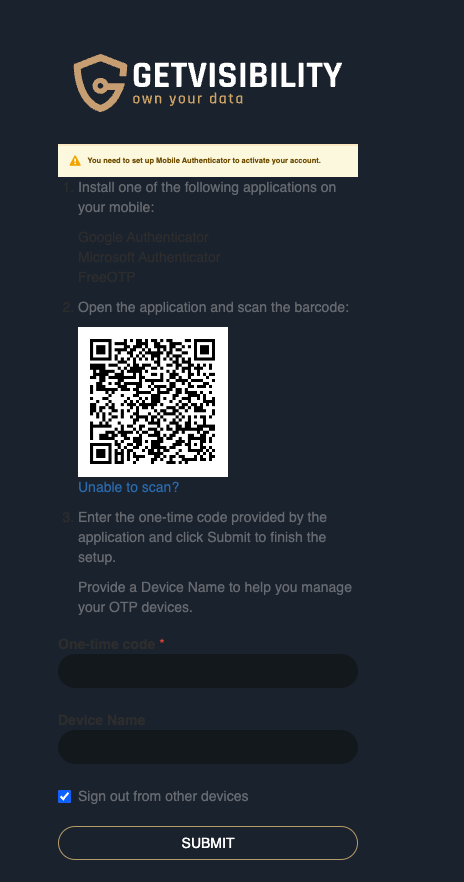After configuring this every time the user logs in, they will be required a ONE-TIME CODE.