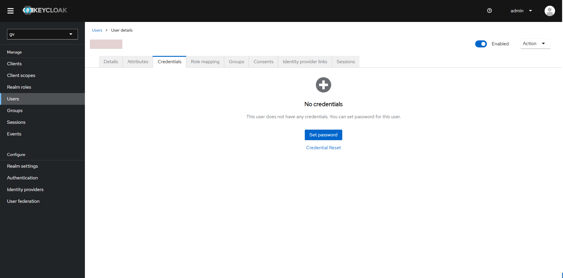 To change this, ensuring you have the master realm selected (top right), navigate to the Users, and open admin. Log out, and log back in as the admin user using its new password.