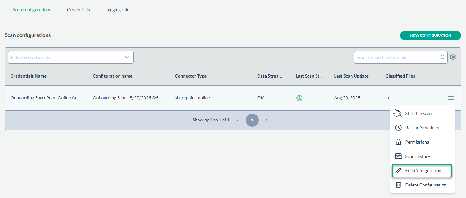 You can also edit the scan configuration created above later using Edit Configuration. For example, if you observe that you scans are running slow, you can go to the edit view and disable the options Fetch Cloud Labels and Fetch Permissions. An example is shown below: