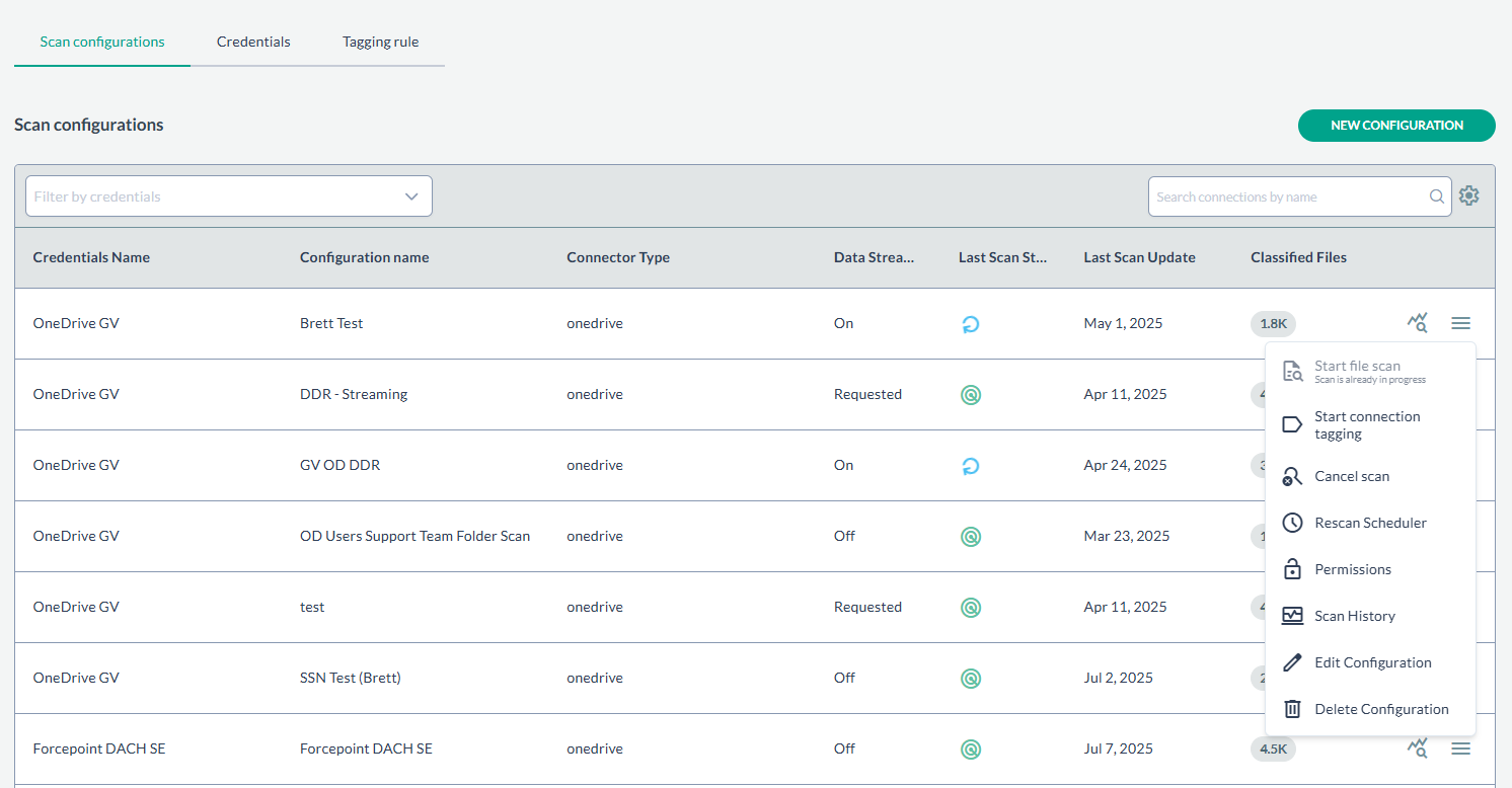 If you have created scan configurations previously, they will be listed under the Scan configurations tab. To run one of the previously created