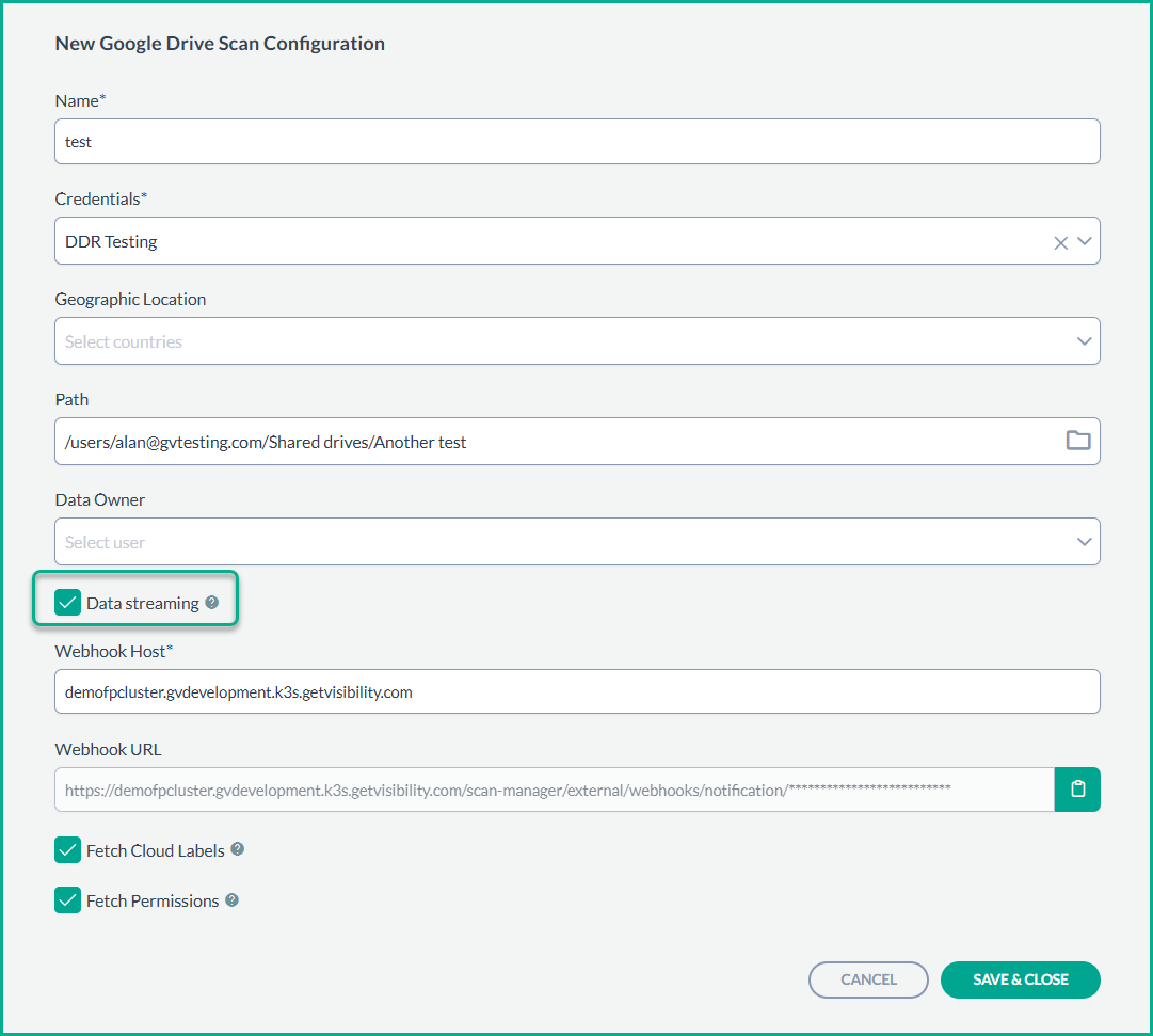 - After enabling Data Streaming, the system will automatically handle the subscription to Google driveʼs real-time events. There is no need to manually configure Webhooks.