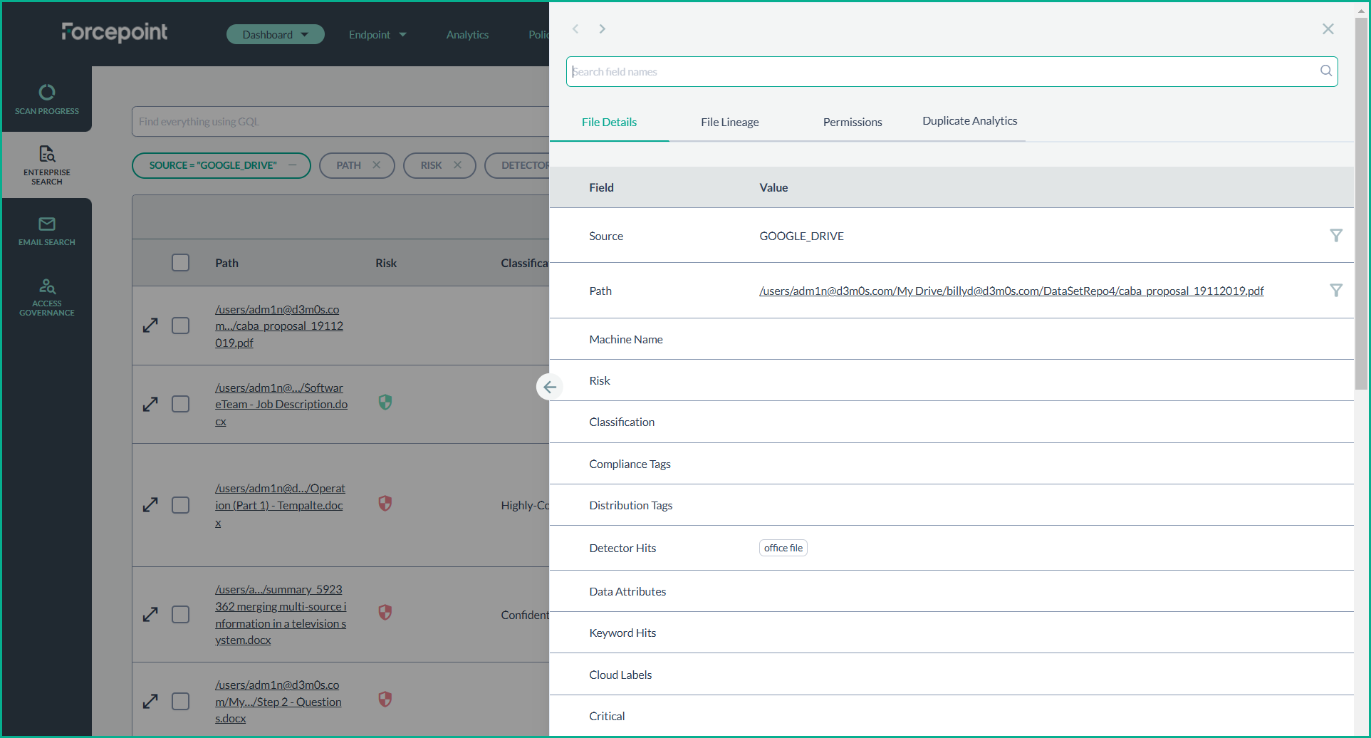 After the subscription is activated, real-time events will start flowing into the platform, and you will be able to monitor them from various sections of Forcepoint DSPM.
