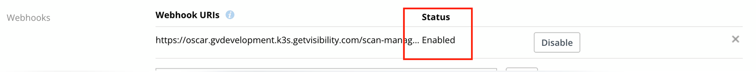 - After clicking Add webhook should have status enabled.