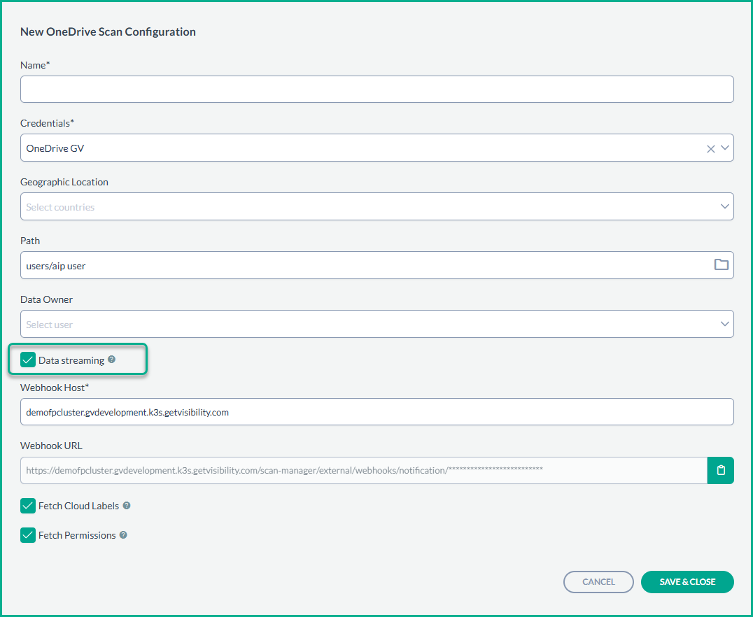 - After enabling Data Streaming, the system will automatically handle the subscription to OneDriveʼs real-time events. There is no need to manually configure Webhooks.