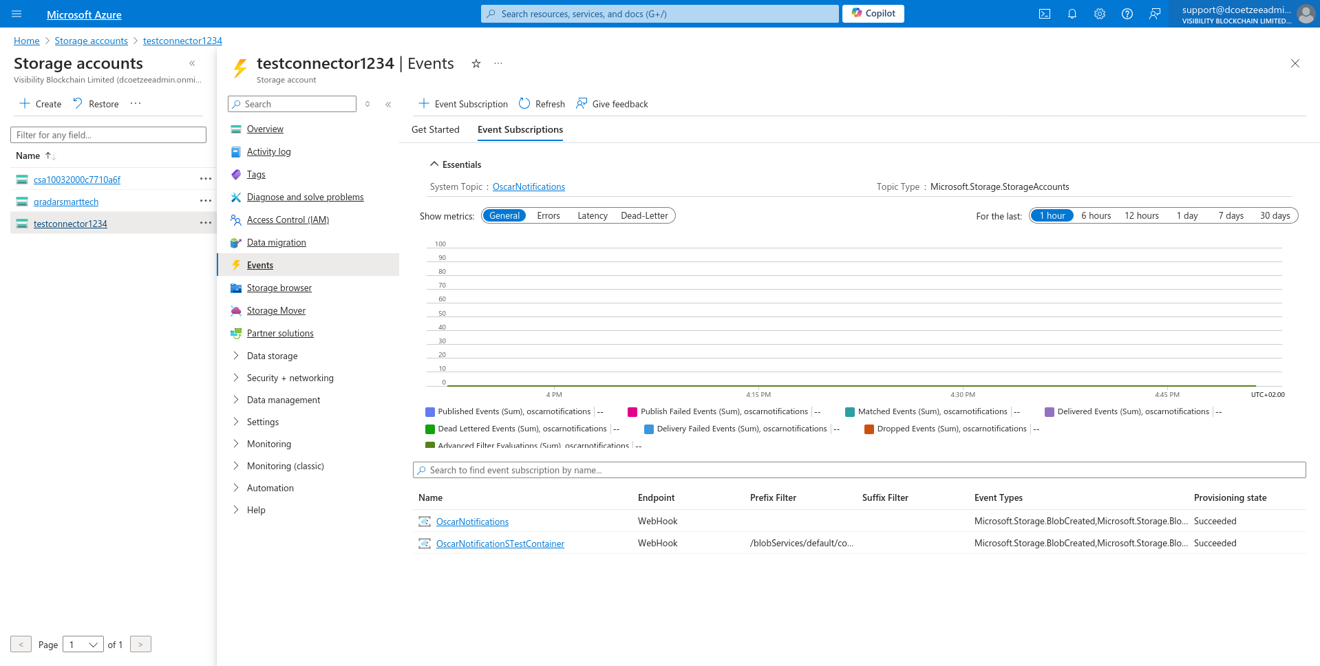 - In the left-hand menu, select Events and click Create Event Subscription from the menu.