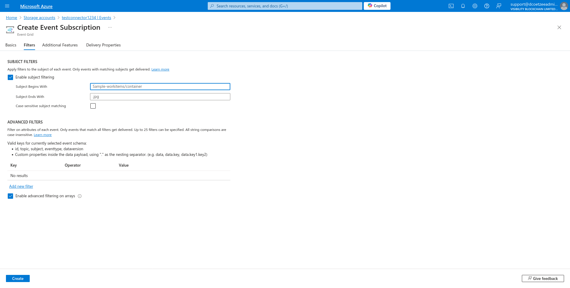 {connectionName}with connection name from previous step.{ "definition": { "$schema": "https://schema.management.azure.com/providers/Microsoft.Logic/schemas/2016-06-01/workflowdefinition.json#", "actions": { "Filter_Records": { "type": "Query", "inputs": { "from": "@triggerBody()?['ContentData']?['records']", "where": "@and(not(empty(item()?['uri'])),or(contains(item()?['uri'], '{FolderPath}/'),contains(item()?['uri'], '{FolderPath}?')))" }, "runAfter": {} }, "Condition": { "type": "If", "expression": "@greater(length(body('Filter_Records')), 0)", "actions": { "HTTP-copy": { "type": "Http", "inputs": { "uri": "{WebhookUrl}", "method": "POST", "headers": { "Content-Type": "application/json" }, "body": { "event": "@setProperty(triggerBody(),'ContentData',setProperty(triggerBody()?['ContentData'],'records',body('Filter_Records')))" } }, "runAfter": {} } }, "else": {}, "runAfter": { "Filter_Records": [ "Succeeded" ] } } }, "contentVersion": "1.0.0.0", "outputs": {}, "triggers": { "When_events_are_available_in_Event_Hub": { "type": "ApiConnection", "inputs": { "host": { "connection": { "referenceName": "{connectionName}" } }, "method": "get", "path": "/@{encodeURIComponent('{eventHubName}')}/events/batch/head", "queries": { "contentType": "application/json", "consumerGroupName": "$Default", "maximumEventsCount": 50 } }, "recurrence": { "interval": 30, "frequency": "Second" }, "splitOn": "@triggerBody()" } } }, "kind": "Stateful" }