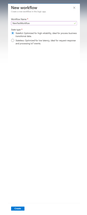 - In new workflow tab fill in name, select State type: Stateful and click Create.