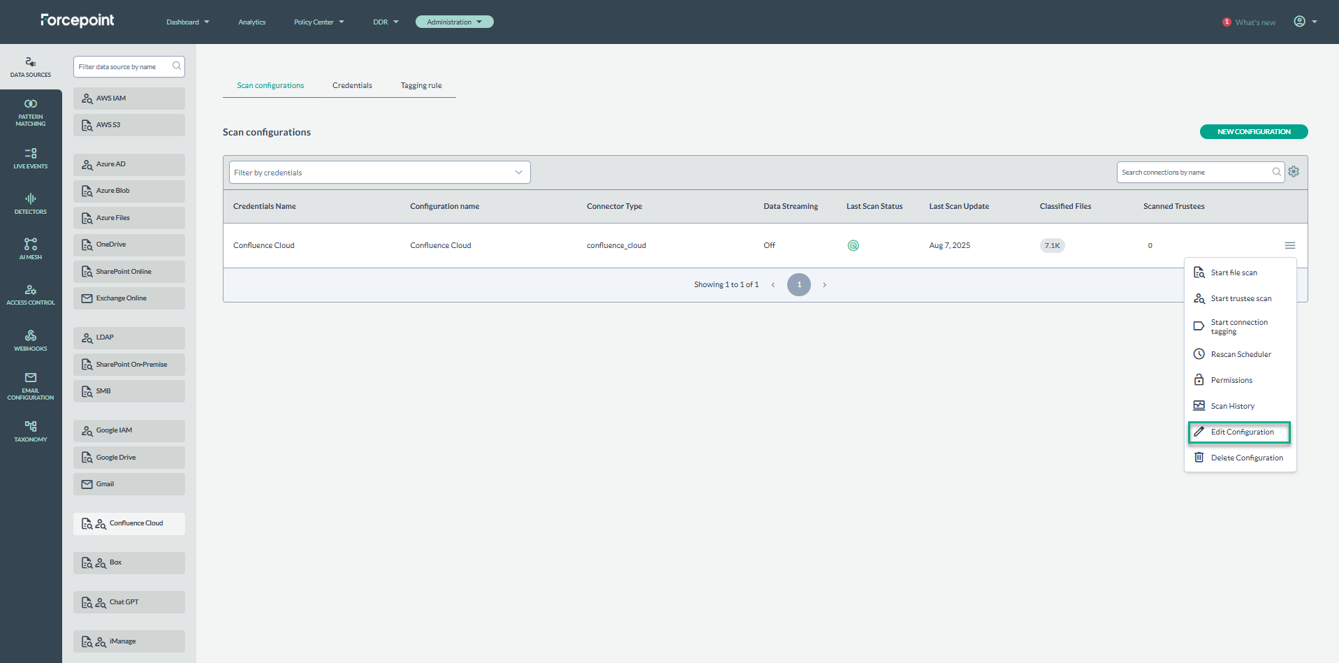 - Locate your existing Confluence Cloud scan configuration and select Edit Configuration.