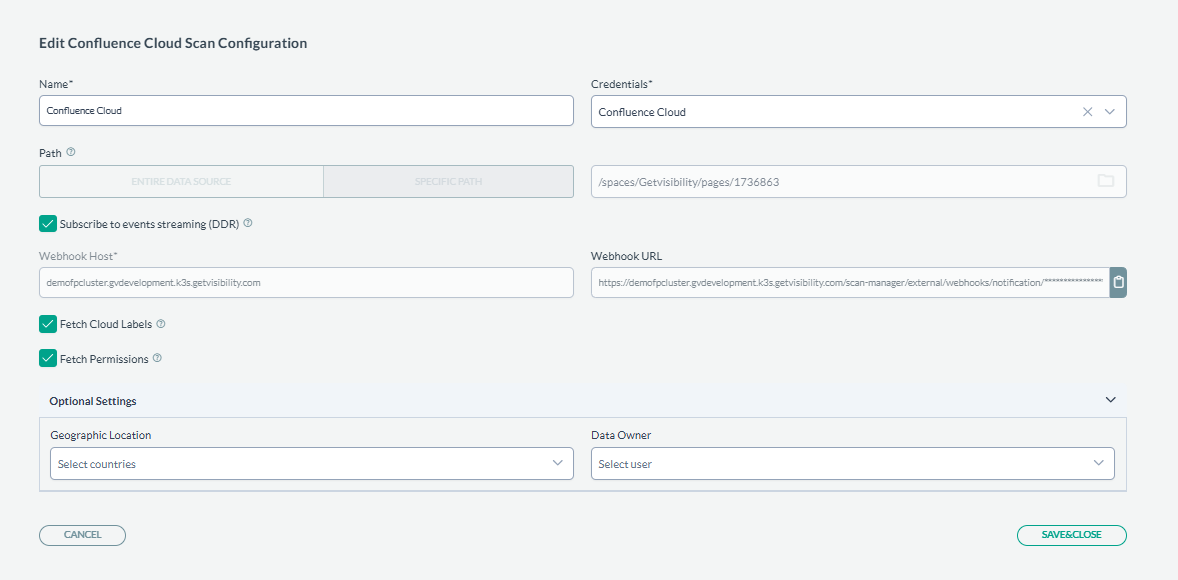 This section provides information on how to configure an existing Confluence Cloud connection with real-time events monitoring and data streaming.