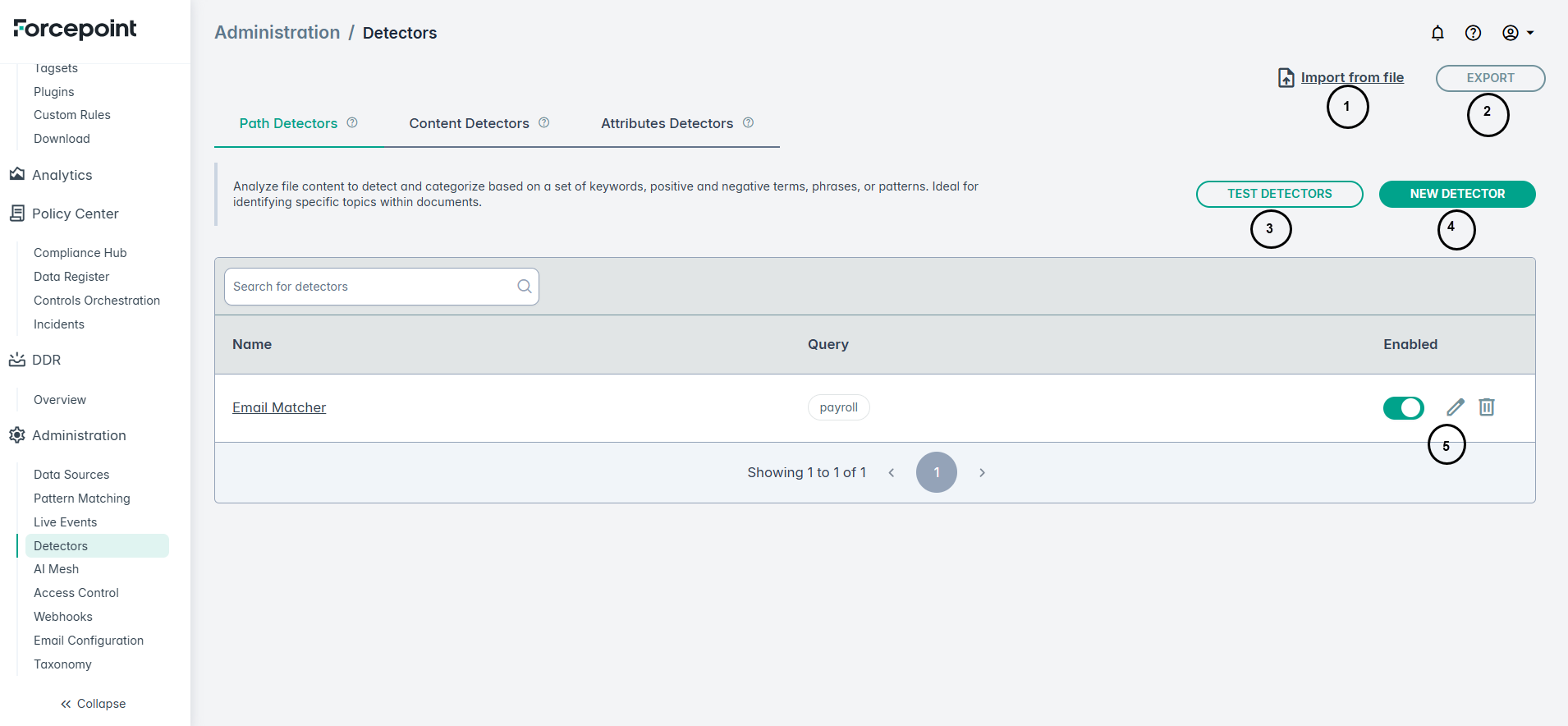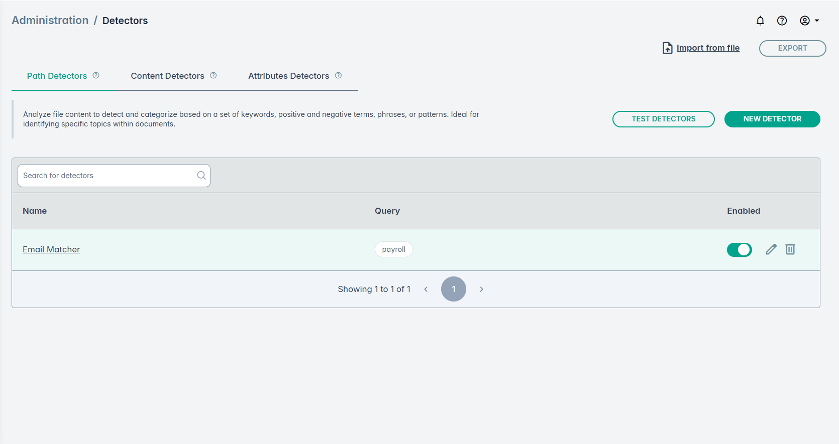 - Select the detectors file to import. A new set of detectors will be imported into your environment.