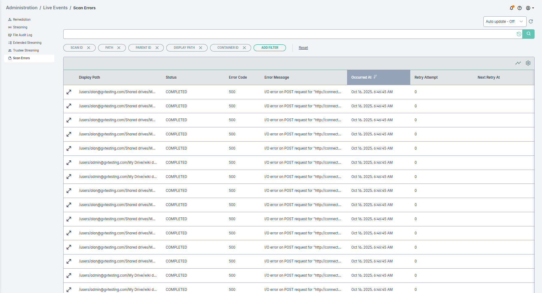 | Id | A unique identifier for the failed retrieval attempt, often combining multiple related IDs (like configuration, scan, container, etc.). |