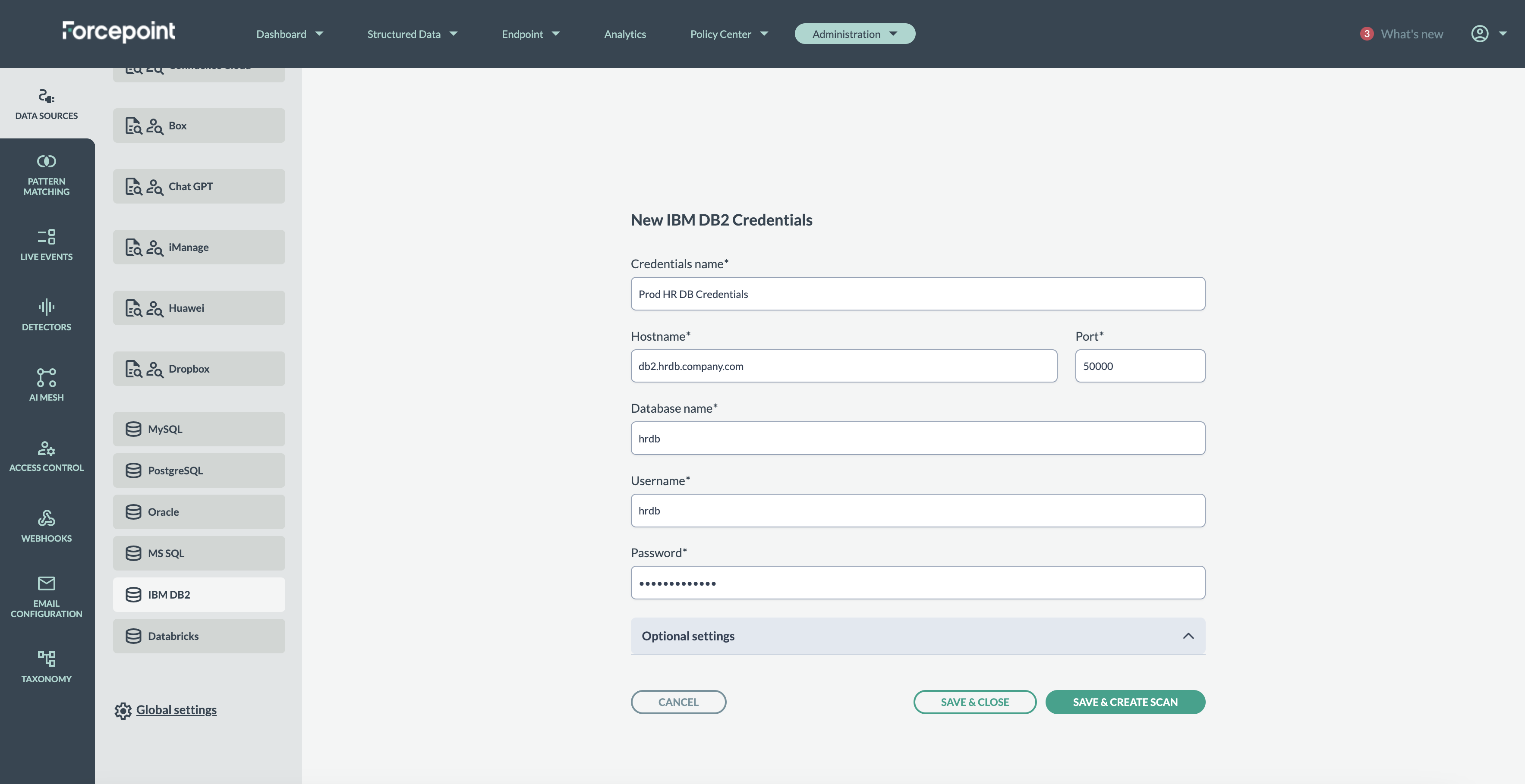 - Click Save & Create Scan to save the credentials and proceed to the scan configuration. The system will attempt to connect and will display an error if the connection