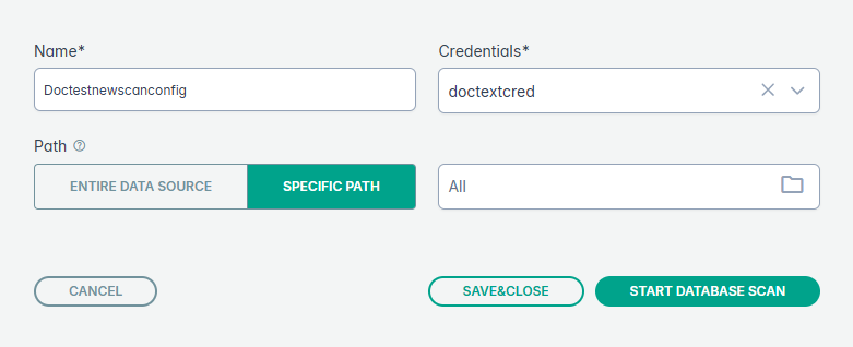 On the next screen, you can either select Save & Close to save the configuration for future scans, or you can click Start Database