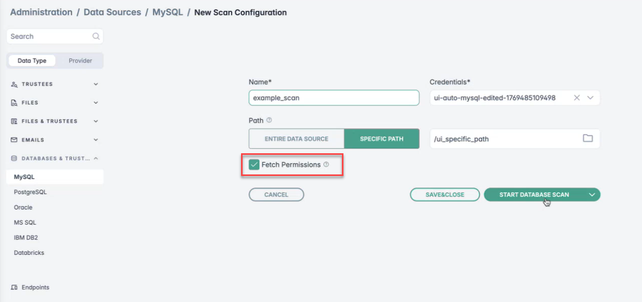 - On the next screen, you can either select Save & Close to save the configuration for future scans, or you can click Start Database