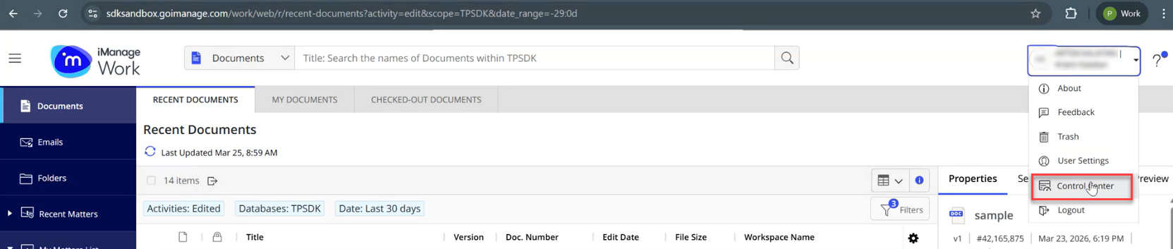 - Log in to iManage.