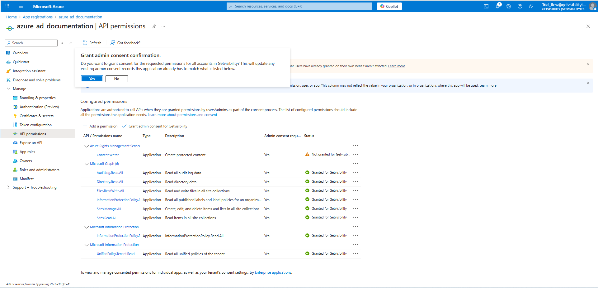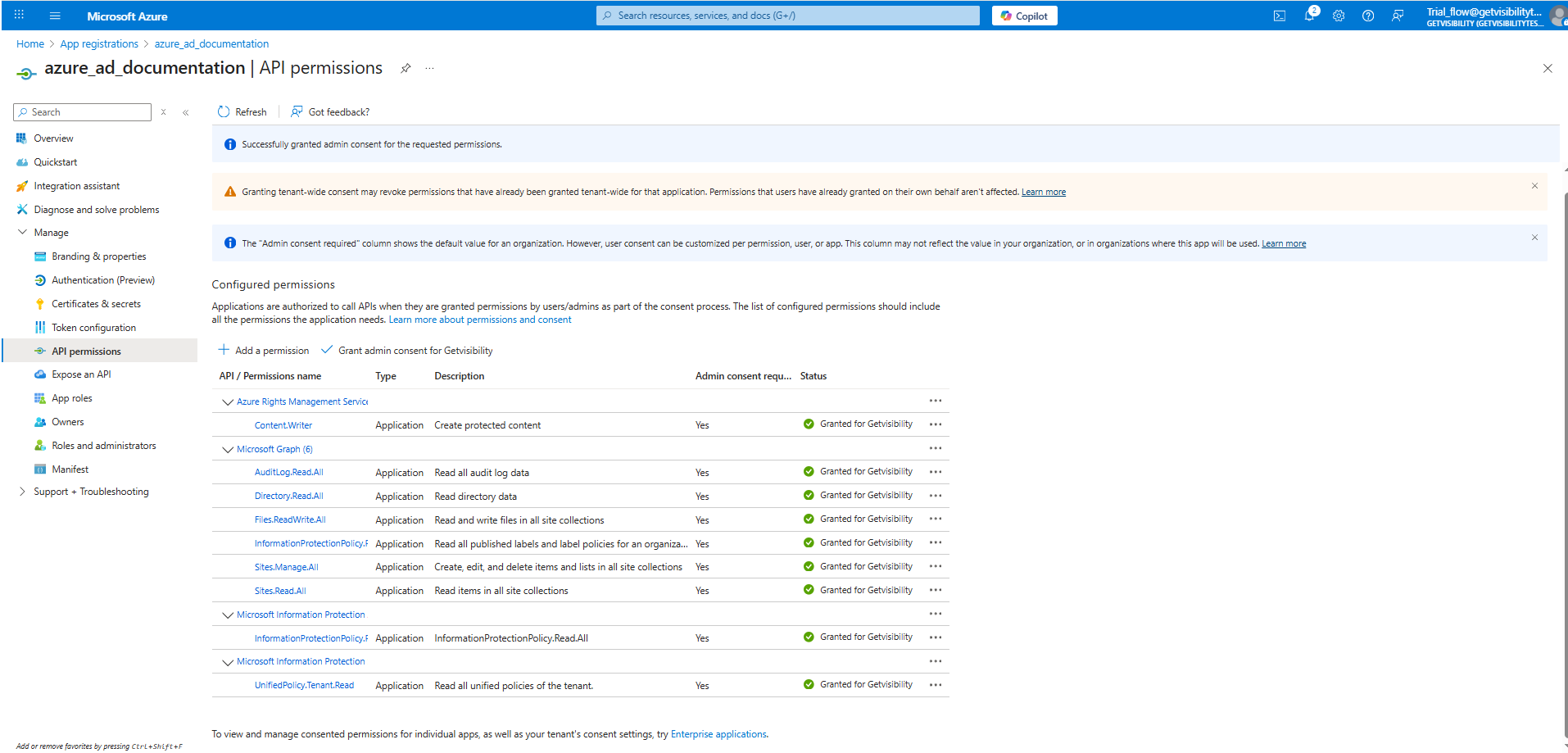 - APIs my organization uses > Microsoft Information Protection Sync Service > Application permissions > UnifiedPolicy.Tenant.Read.