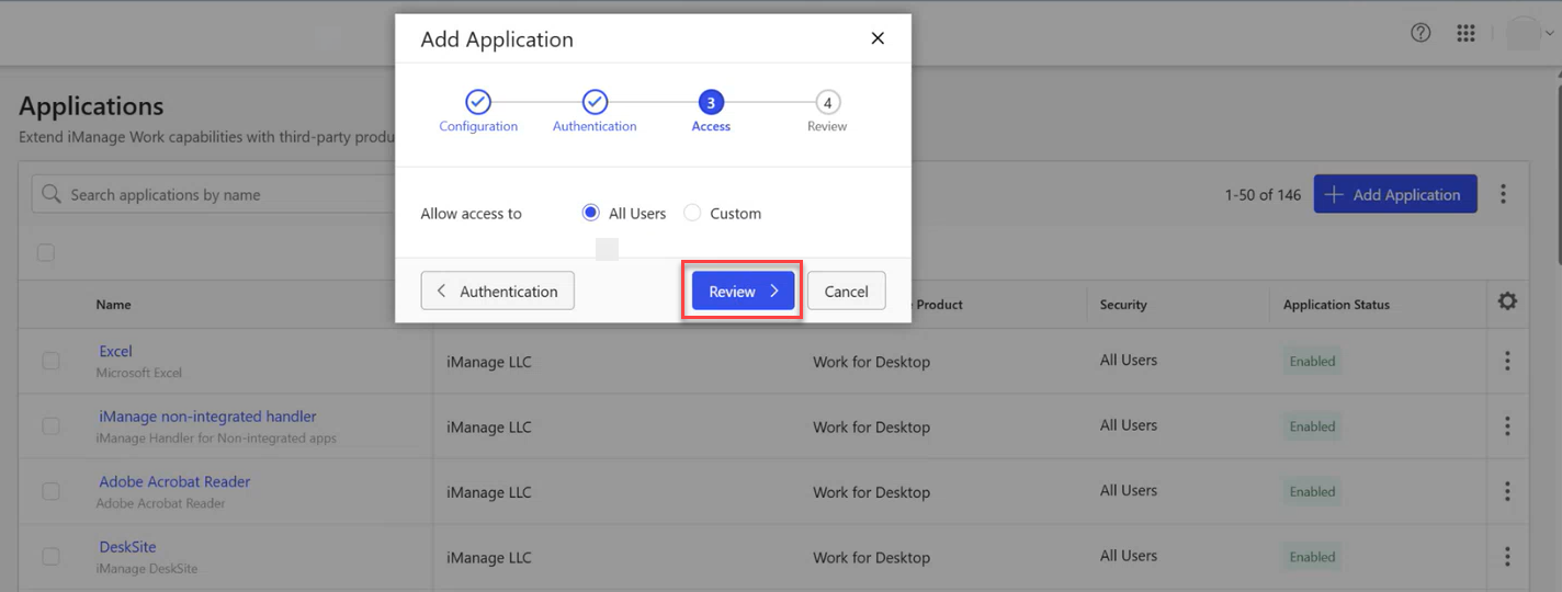 On the Access window, Allow access to to All Users or choose Custom to select specific users and click