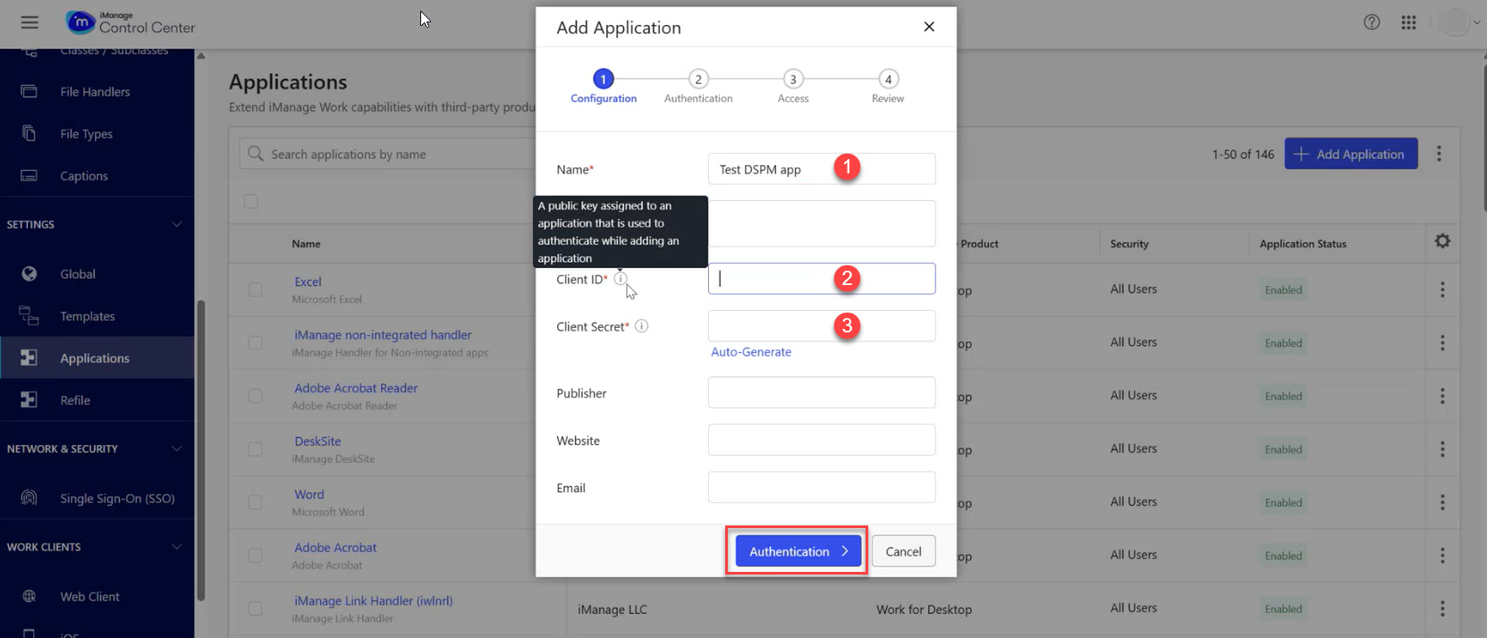 - Client Secret: Click Auto-Genrate to auto populate the Client Secret.Note: Make sure to note down the Client ID and Client Secret.