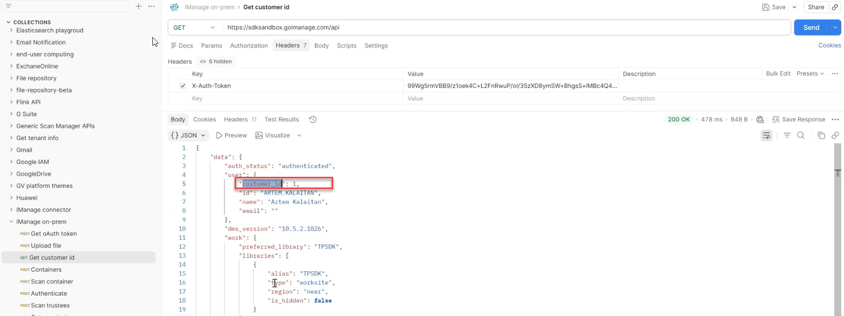 Customer ID should be provided by iManage admins, but if it is not provided, it can be retrieved from the /api response.