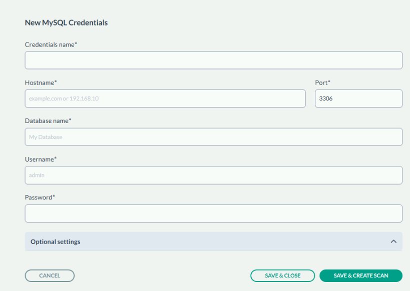 - Provide the Credential Name, Hostname, Database name, Username, and Password for the MySQL database instance.