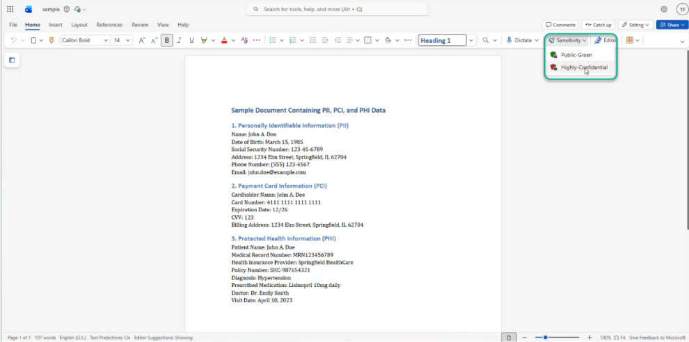- You can also verify the Sensitivity label applied to the file:
