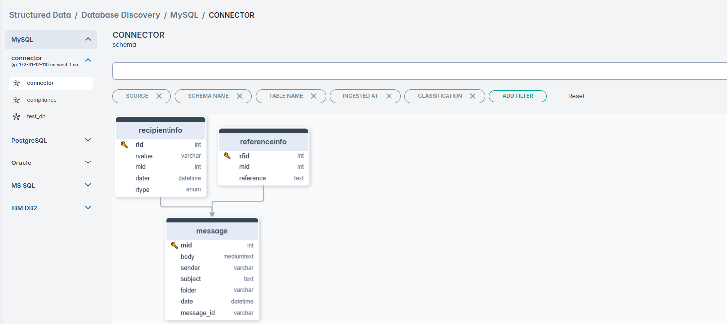 - View schema: Displays the full schema structure under data discovery. An example, is shown below: