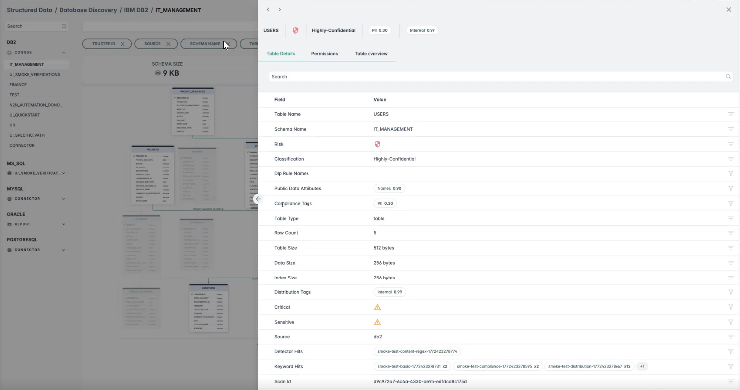 For example, say you want to view the details on IBM DB2 schemas, then expand the IBM DB2 section, and click any specific schema:
