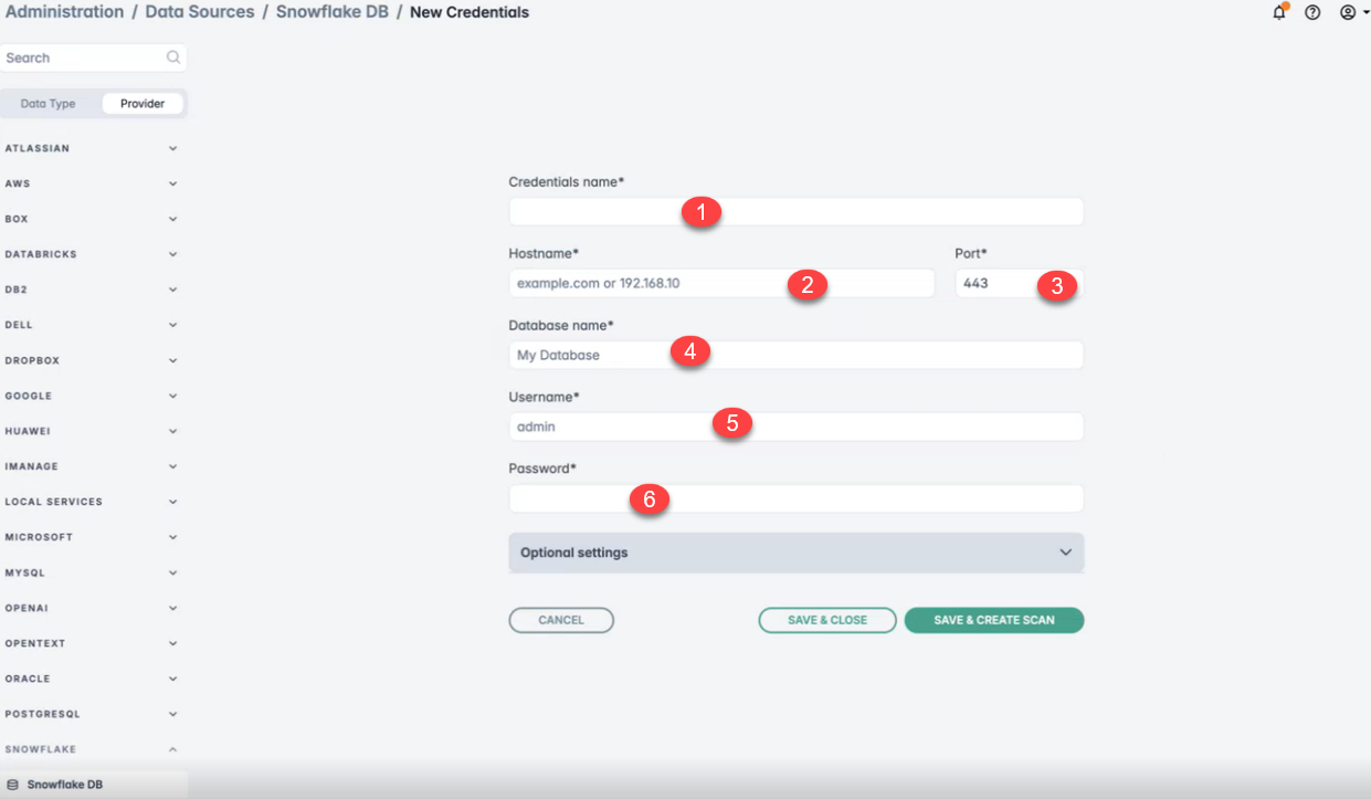 - Gather the required connection details and provide them in the relevant fields:
