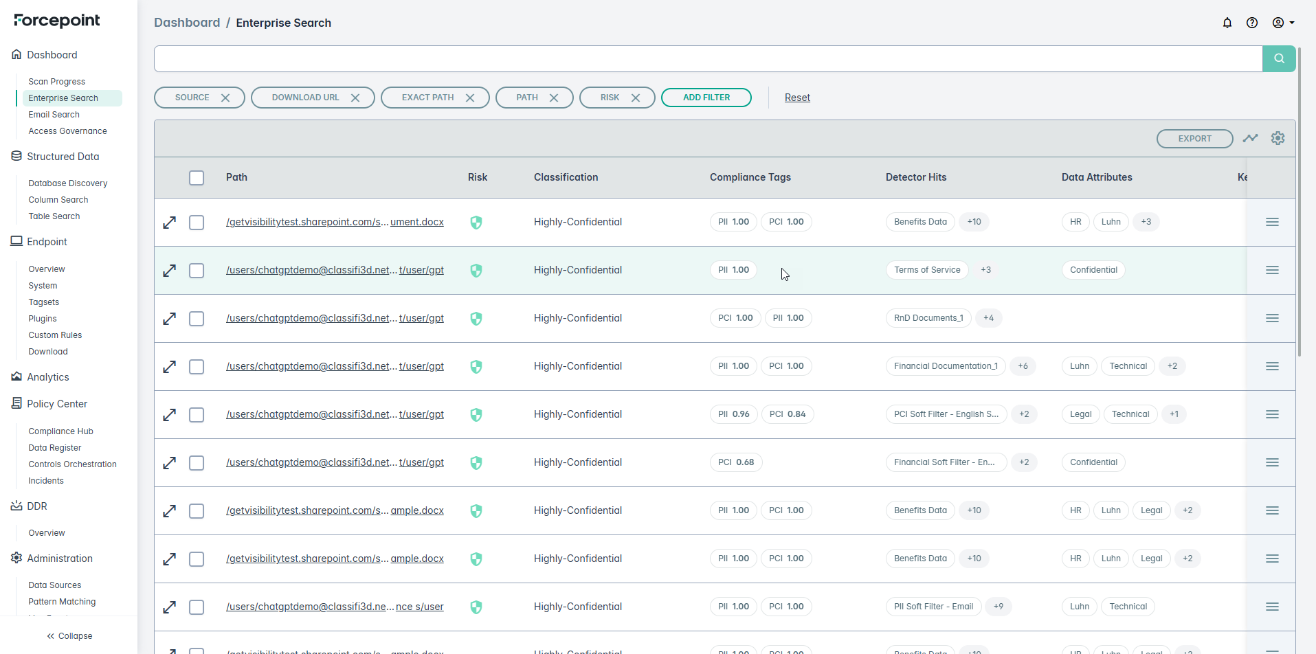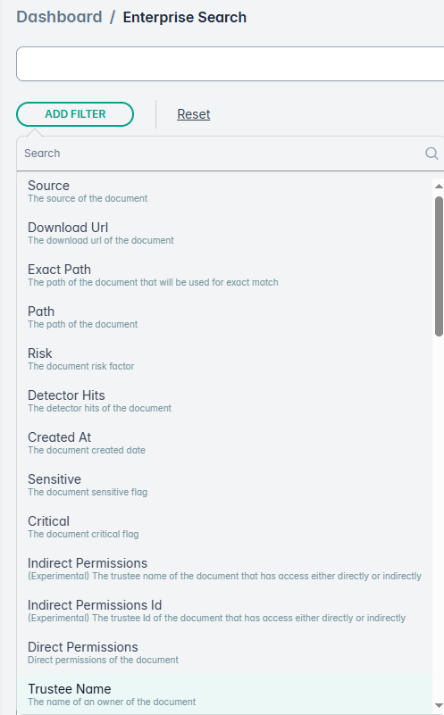 By default, the Enterprise Search page gives a listing of all the files that were scanned and cataloged. By utilizing the GetVisibility Query Language (GQL), you can filter this data to focus on a more manageable subset. This allows you to narrow your search, making it easier to analyze and take appropriate action.