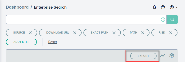 - Use the EXPORT button to create a CSV or JSON download of the filtered data.