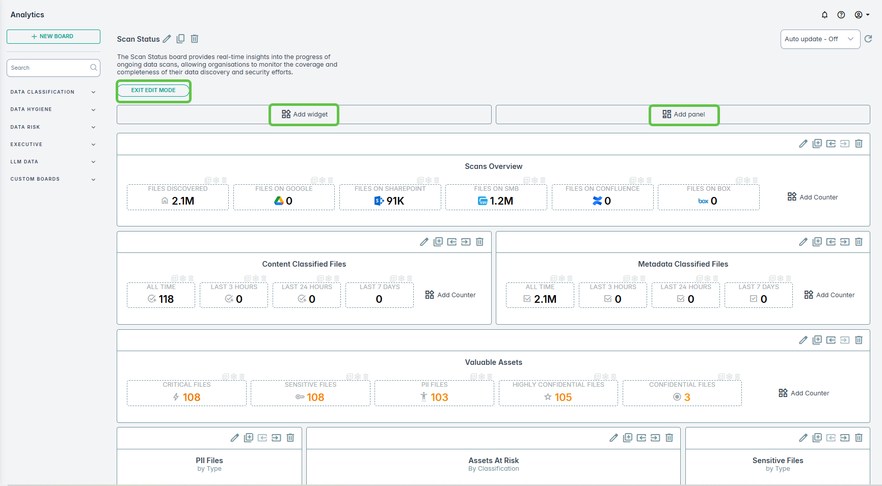 | 7 | Edit Widgets: Click the Edit Widget button, to open the edit view. To exit click Exit Edit Mode.