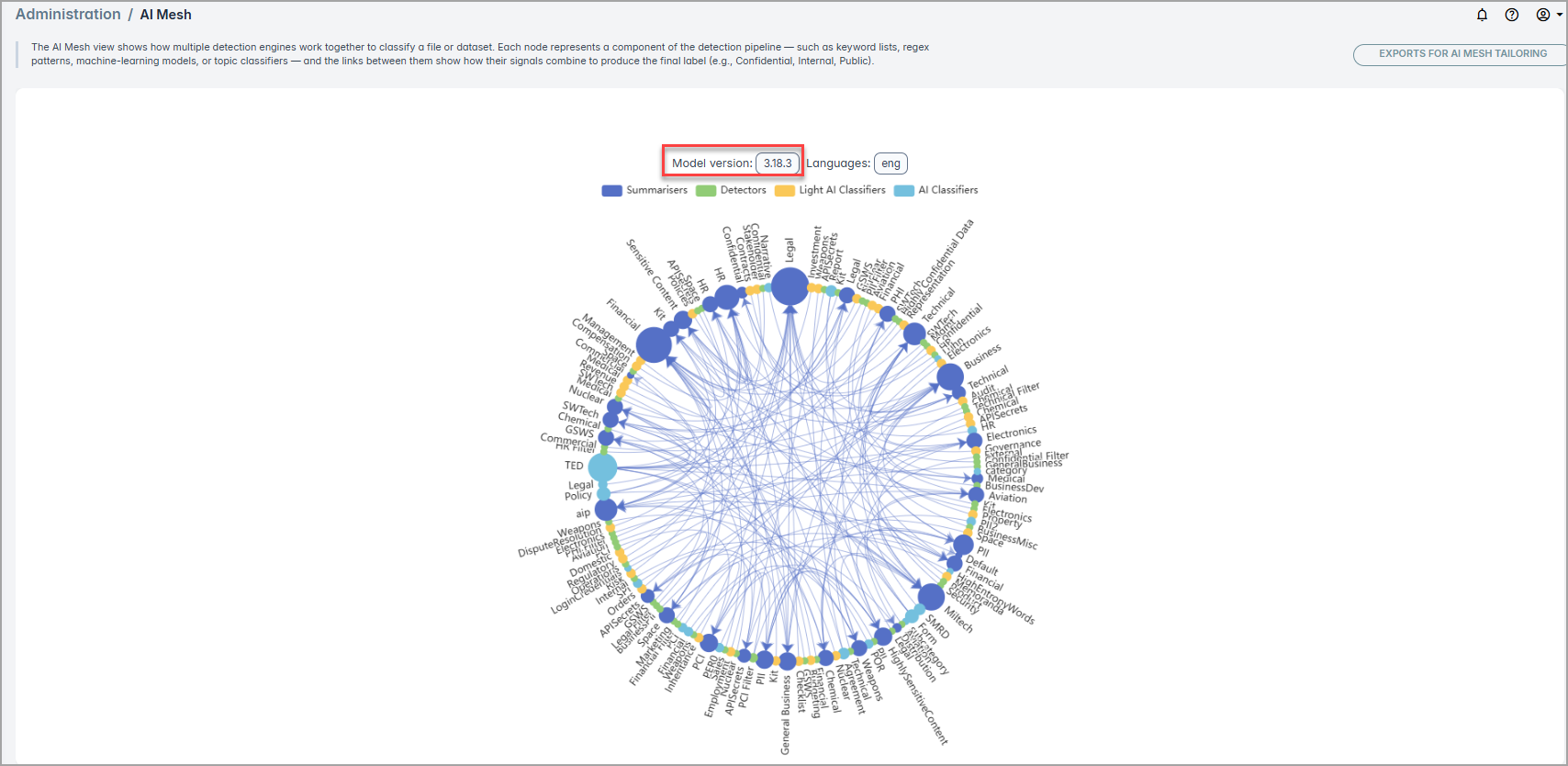 How to check AI Mesh Model version To check the AI Mesh Model version from the Administration section, click Administration > AI Mesh.