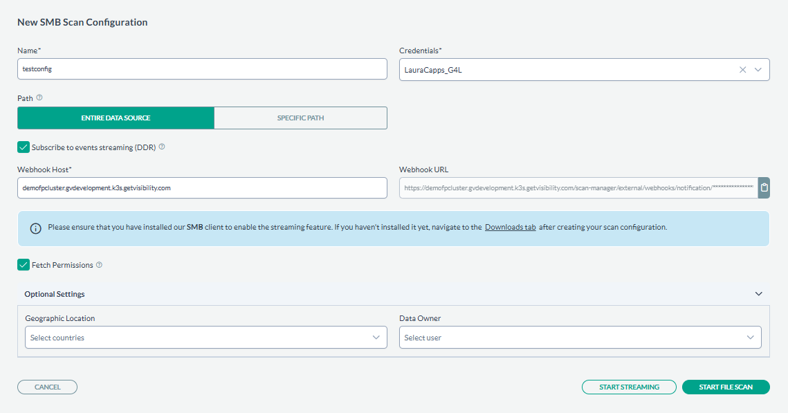 This section walks you through the steps for enabling DDR streaming for a SMB connection and monitoring live streaming events within the DSPM platform.