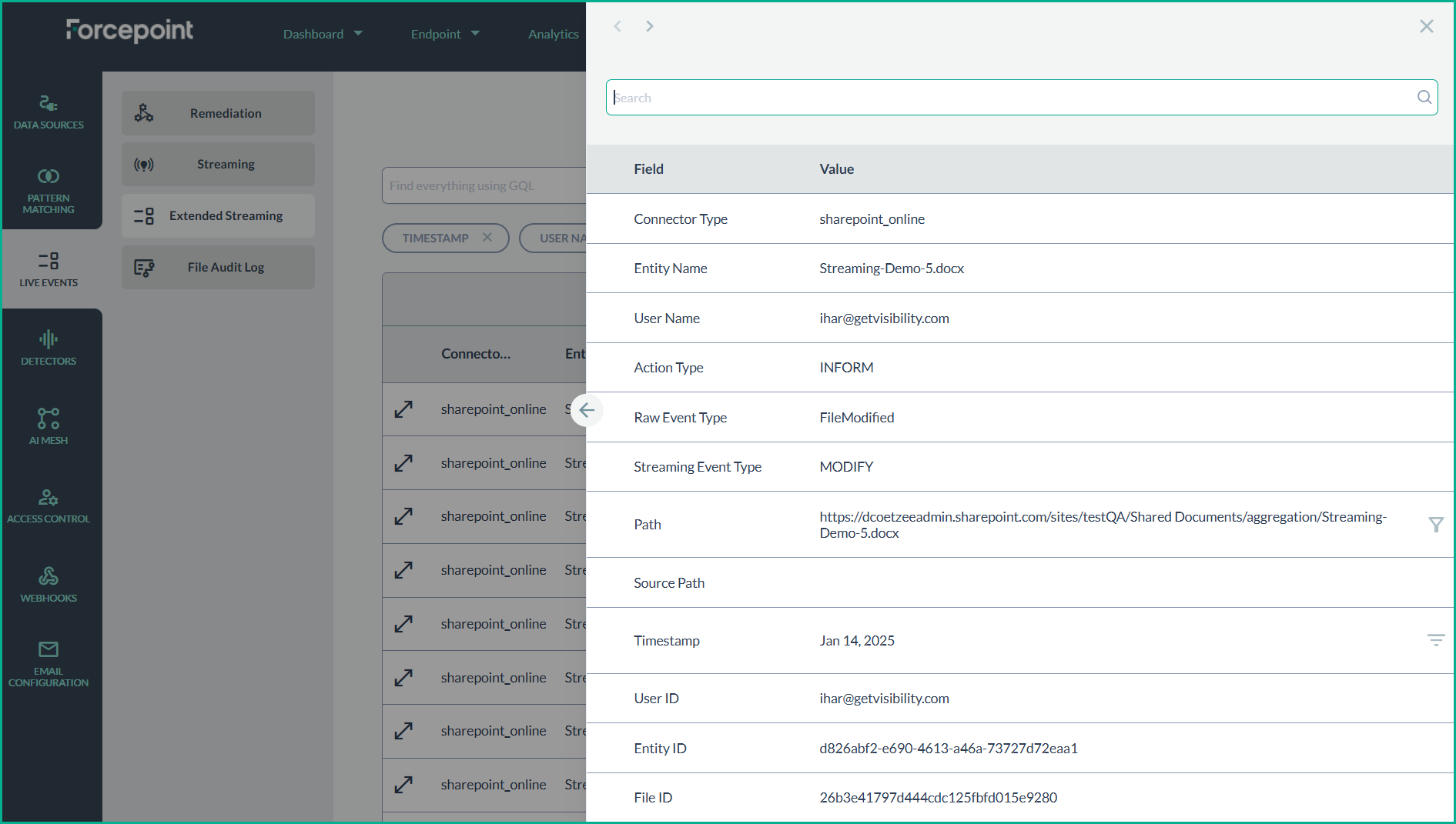 This section walks you through enabling real-time data streaming for a Azure AD connection and how to monitor live streaming events within the Forcepoint DSPM platform.