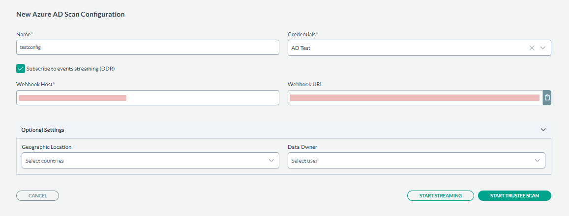 - After enabling Data streaming, the system will automatically handle the subscription to Azure ADʼs real-time events. There is no need to manually configure